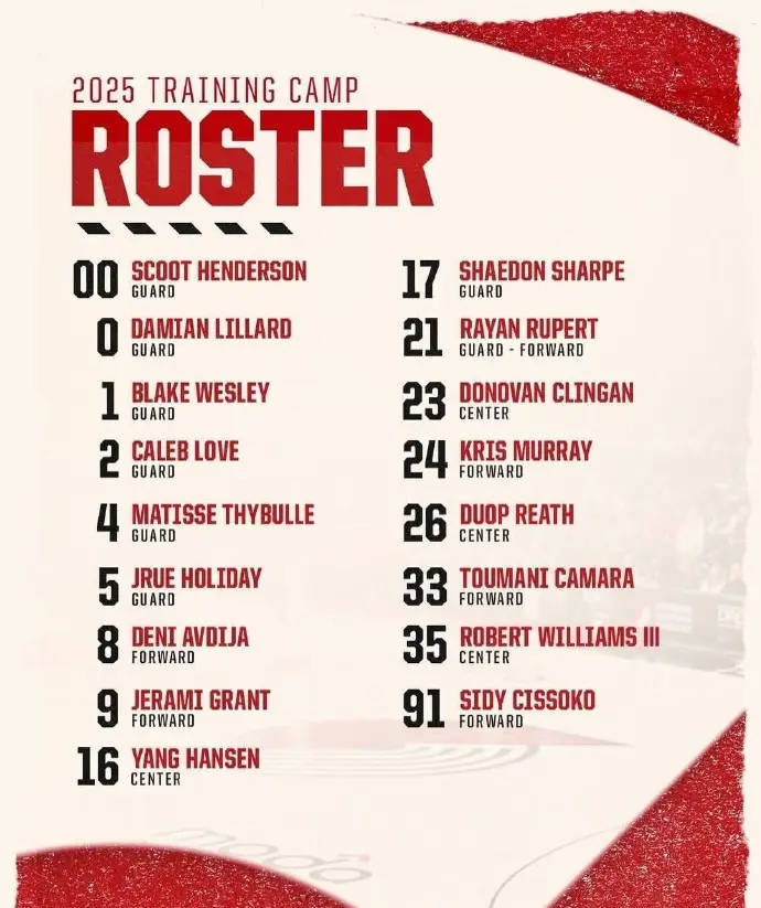 北京时间2025年9月30日,开拓者公布了新赛季训练营17人大名单。